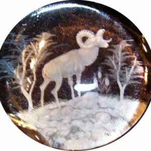 Kristall Briefbeschwerer, rund, Widder