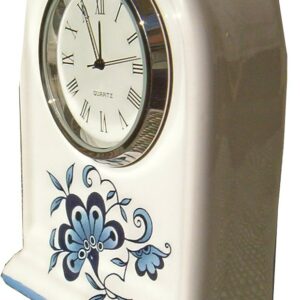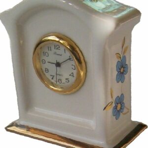 SKU: 601003Keramik Miniaturuhr Tor-Form Blumen und Blaurand handgemalt Quar