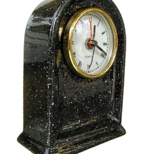 Kaminuhr granit: schwarz getüpft, mit Quarz Weckerwerk