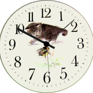 SKU: 70441Keramik Wanduhr (Motiv Kätzchen) mit Biene, Hellbraunrand Quarzu