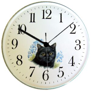 SKU: 70312Keramik Wanduhr (Motiv Katze) schwarz, Hellblaurand