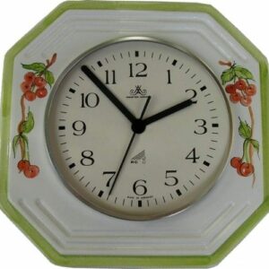 SKU: 0331021FKeramik Küchenuhr Kirschen handgemalt Grünzierung Funkuhr