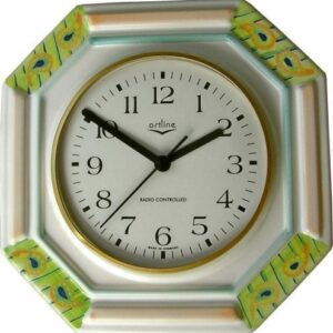 SKU: 141031Küchenuhr Pfaunenauge grün-hellorange handbem. Funkuhr