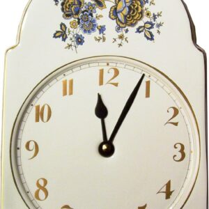 SKU: 032119FKeramik Schwarzwalduhr groß Gold-blau Rosen Goldrand Quarzuhr