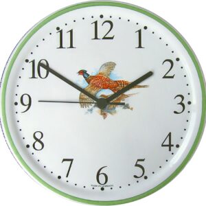 SKU: 70601Keramik Wanduhr Motiv Fasanenpaar fliegend, Grünrand, Quarzuhr