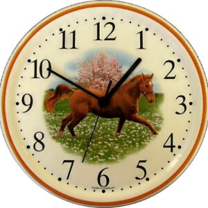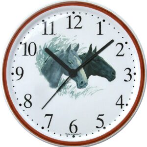 SKU: 150627Keramik Wanduhr Motiv Pferdeköpfe Pferdeköpfe Grünrand Quarzuhr