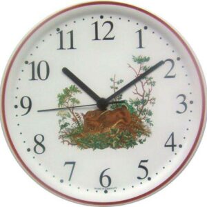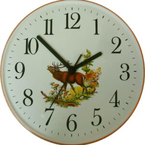 SKU: 150623Keramik Wanduhr Röhrender Hirsch im Wald Beige Rand Quarzuhr