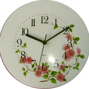 SKU: 50003Keramik Wanduh extra große runde Quarzuhr Rosa Blumen Glasurfehl