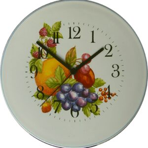SKU: 50073Keramik Wanduh extra groß mit Früchtedekor, Blaurand hbm. Quarzu