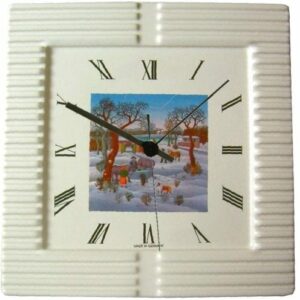 SKU: 40010Keramik Wanduhr(Naive Malerei: Winter Bauerhof im Schnee Quarzuhr