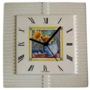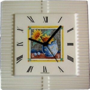 SKU: 211766Keramik Wanduhr Motiv sortiert: Blumen, Krug im Gelbrand Quarzuhr