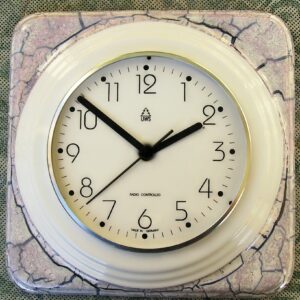 Keramik Küchenuhr Silberlüster, Funkuhr, Dekorfehler