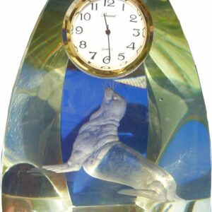 Optische Kristall Uhr schwarz auf Messing Sockel Quarz Einsteckwerk