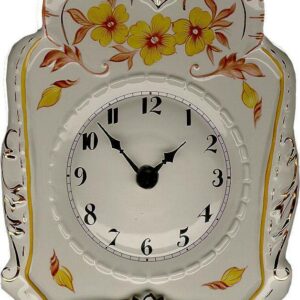 Keramik Wanduhr gelbe Blumen handgemalt, Quarzuhr