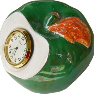 Porzellan Tischuhr Apfel grün-rot Einsteckwerk Quarz gold