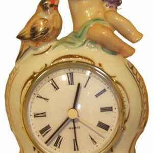 SKU: 561020Porzellan Tischuhr, Putto mit Vogel