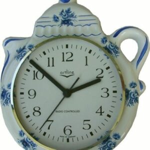 SKU: 128022bKaffeekannen-Uhr Saxo Blaurosen Blauzierung handgemalt Funkuhr