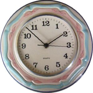 SKU: 218619FKeramik Küchenuhr „beige, pink-türkis handgemalt“ Funkuhr