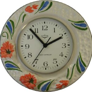 SKU: 242145Keramik Küchenuhr „Relief große Blumen rot-braun-grün“ Funkuhr