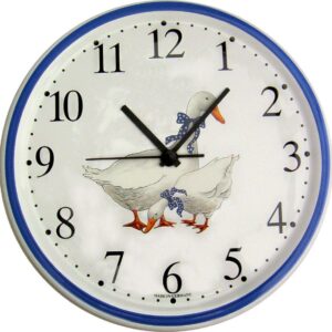 Keramik Küchenuhr „Zwei Gänse“ Blaurand, Funkuhr