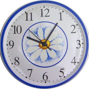 SKU: 150910Keramik Wanduhr (Motiv Dasy Blue) hellblaue Blume, Blauzierung,