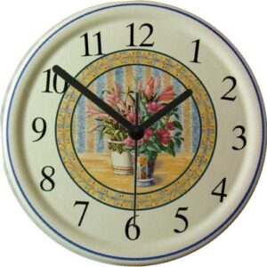 SKU: 150830Keramik Wanduhr „Blumentopf mit Rosa Blumen“