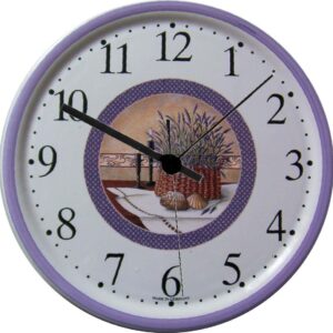 SKU: 150811Keramik Wanduhr (Motiv Heilkräuter) Korb lila mit Muscheln, Quar