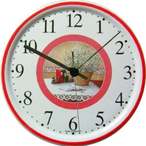 SKU: 150819Keramik Wanduhr Motiv Heilkräute, Rotrand, Quarzuhr