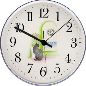 SKU: 70534Keramik Wanduhr Motiv Katze mit Mond Blaurand, Quarzuhr
