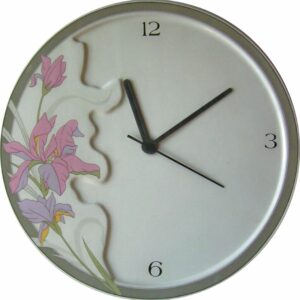 SKU: 070104aKeramik Wanduhr groß, mit Relief, Riesen Orchideen, Graurand, Q