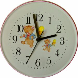 SKU: 70125Keramik WanduhrTeddy mit Kuhen Blaurand Quarzuhr