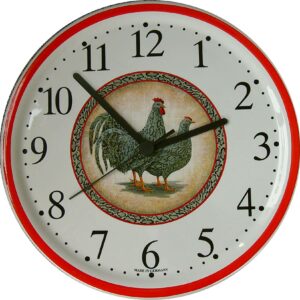 Keramik Wanduhr Savanna Collection Hahn und Huhn grau Rotrand Qu