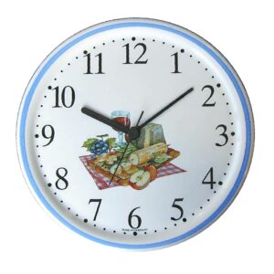 SKU: 50073Keramik Wanduhr Karierte Tischdecke, Rotweinglas,Apfel,Traube,h.