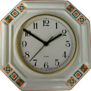SKU: 70107Keramik Küchenuhr „Olympia“ grün-orange Tapetendekor Funkuhr!