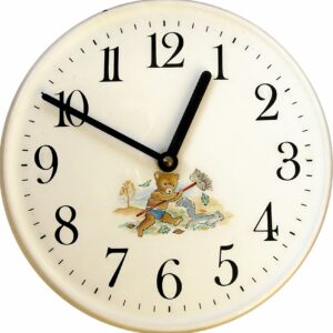 SKU: 160008FKeramik Wanduhr kleiner Bär mit Besen und Eichhörnchen Junghans