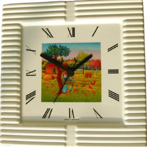 SKU: 150705Keramik Wanduhr (Naive Malerei: Frühling mit Hahn u Huhn Quarzuh