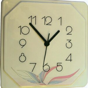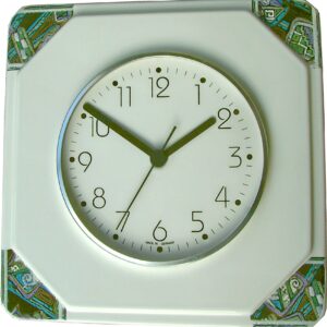 SKU: 016296FKeramik Küchenuhr Küchenuhr viereckig weiß, Tapetendekor mit Silber Funkuhr