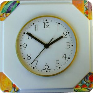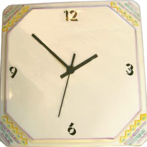 SKU: 016100Keramik Wanduhr quadratisch gelb-violett handgemalt Quarzuhr