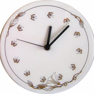 SKU: 118001Keramik Wanduhr goldene Schmetterlinge Blumenknospel Quarzuhr