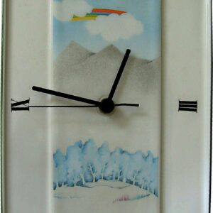 SKU: 17100Keramik Wanduhr quadratisch länglich hellblau, mit Regenbogen, Q