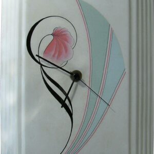 SKU: 014901PKeramik Wanduhr Türkis-rosa-schwarzes Dekor Pinkblume Quarzuhr